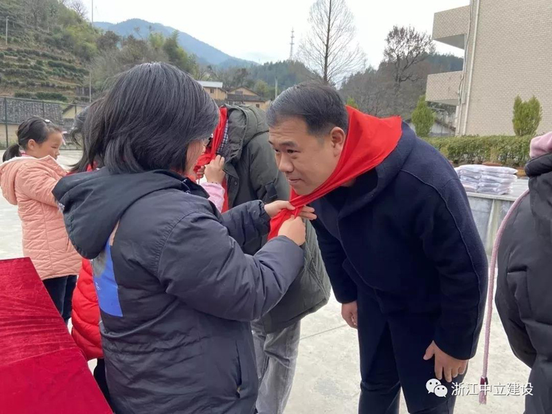 新年伊始,恰逢臘八,浙江中立建設有限公司帶著81套校服走進遂昌大山深處的黃沙腰小學,給大山里的孩子送去冬日里的溫暖。公司副總經理葉麗紅、項目負責人曹亮、黃沙腰鎮鎮長毛威、黃沙腰鎮人大主席涂挺、遂昌縣教育局黨組成員王其孔、黃沙腰小學校長葉益明出席了捐贈儀式。在捐贈儀式上葉麗紅希望同學們刻苦學習,立志成才,不負韶華,回報社會,回報祖國。葉校長致辭對捐贈校服的善舉表述了衷心的感謝。校優秀少先隊員王夢媛致感謝詞:“叔叔阿姨們,請相信我們,我們會努力學習,去創造一片屬于自己的絢麗天空;我們會努力學習,早日成為國家的棟梁,為家鄉建設貢獻自己的力量。我們堅信一定不會讓你們失望!”