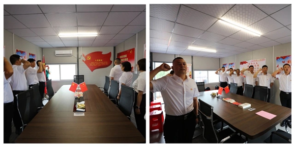 支部建在工地上!7月1日,公司黨支部書記鐘鳴、董事長周健帶領(lǐng)全體黨員、高層人員來到麗水電大蓮都學(xué)院新建工程項(xiàng)目,首先和項(xiàng)目工作支部全體黨員觀看慶祝中國共產(chǎn)黨成立100周年大會直播實(shí)況。